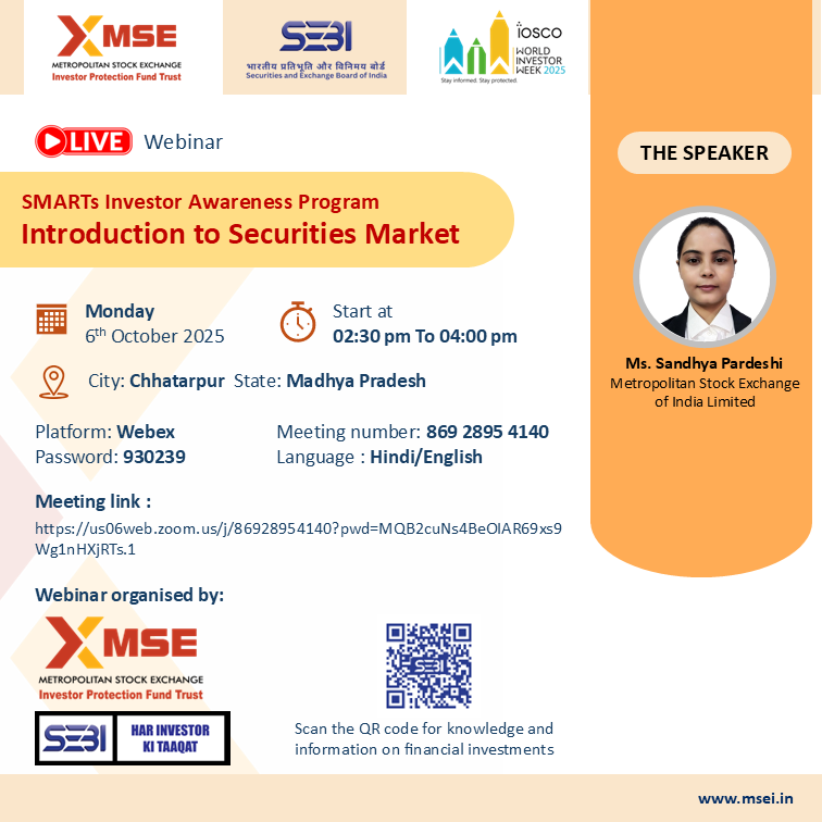 15 Oct 06, 202514:30:00Introduction to Securities MarketMadhya PradeshChhatarpurONLINE LINK -