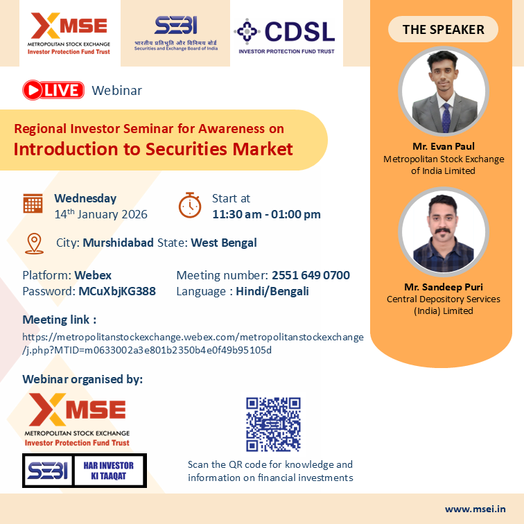 | Dec 23, 2025 | 14:00:00 | Introduction to Securities Market (Beginners) | West Bengal | Purba Medinipur | PHYSICAL |